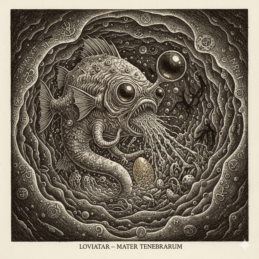 Loviatar: Edustaa Negatiivista kosmista energiavirtaa (tai Muodon Pakkoa). Kalevalan perinteessä Loviattarella on tuhoava, pimeä puoli, joka tässä symboloi rajoituksia ja muotoon pakottamista.